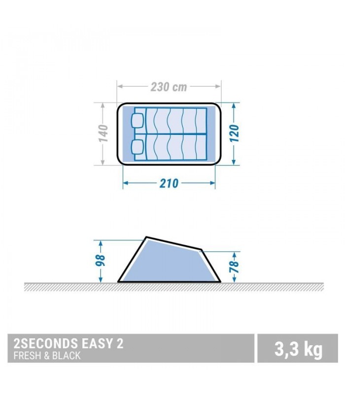 فرار آخر هفته؟ طراحان ما دقایق خود را برای ارائه چادر برای 2 نفر حساب نکردند که می توانید در چند دقیقه آن را تنظیم کنید. تحرک تضمین شده است! به شما راحتی می دهد: اتاق های بزرگ ، سقف های بلند. با انتخاب طرح Fresh & Black ، در چادر خنک و تاریک بخوابید. سیستم تاشو آسان تنش را از بین می برد. اطلاعات بیشتر
